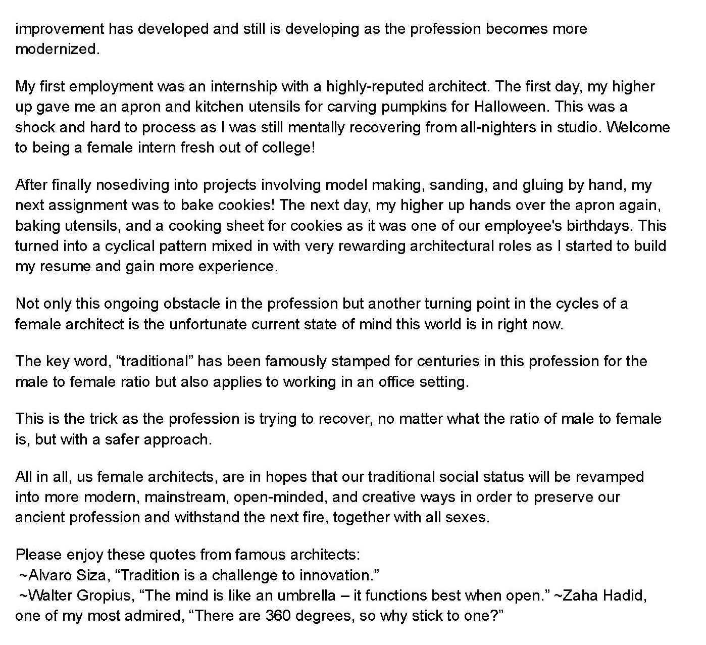 The Life Cycles of Women in Architecture Submittal